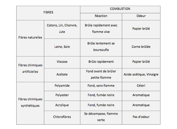 Si l’étiquette a disparu, voici un tableau pour vous aider à identifier la nature de la fibre.